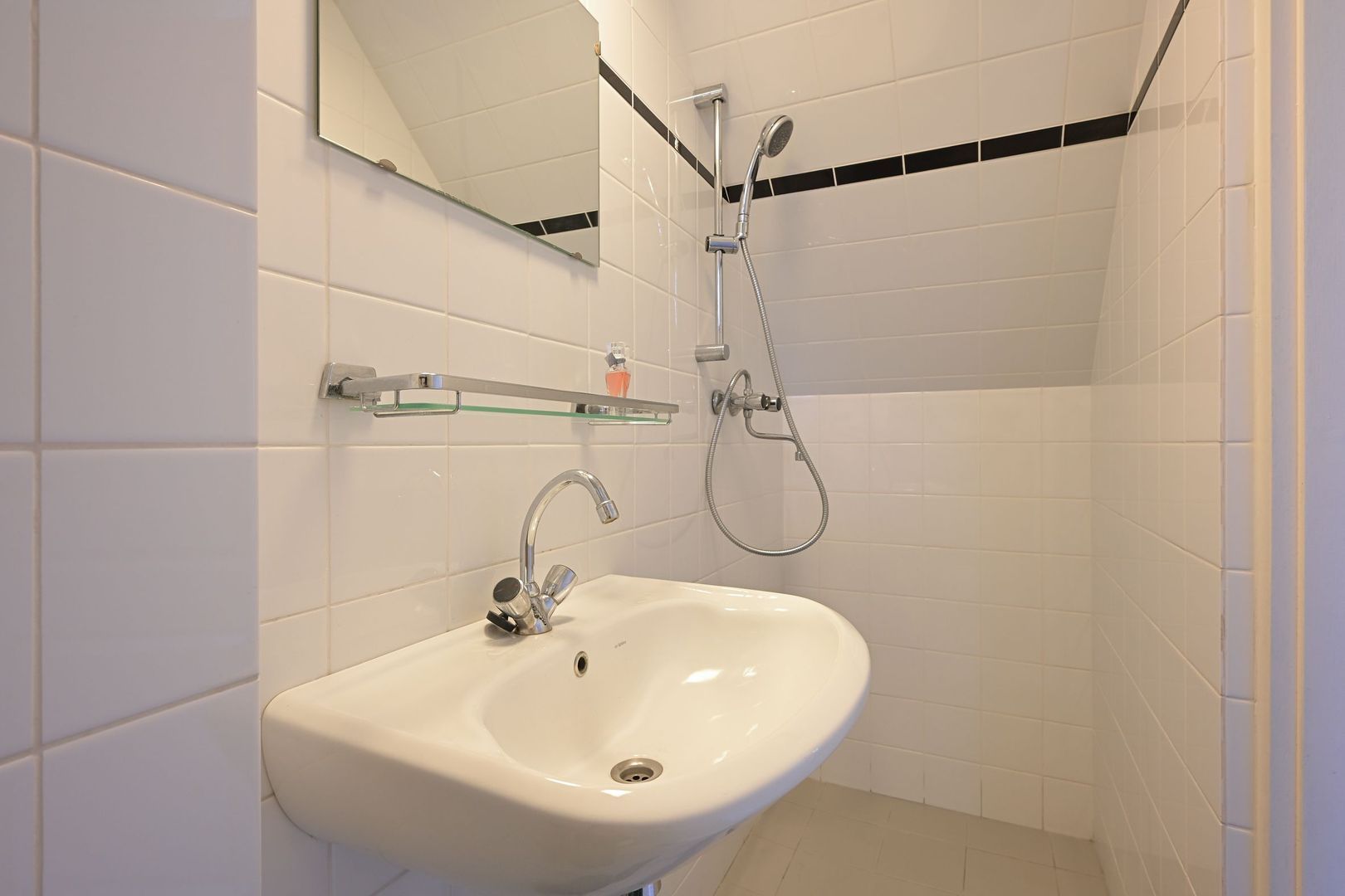 This level offers three bedrooms, a well-maintained bathroom with bathtub, and a separate toilet. One of the bedrooms has access to a second balcony at the rear.