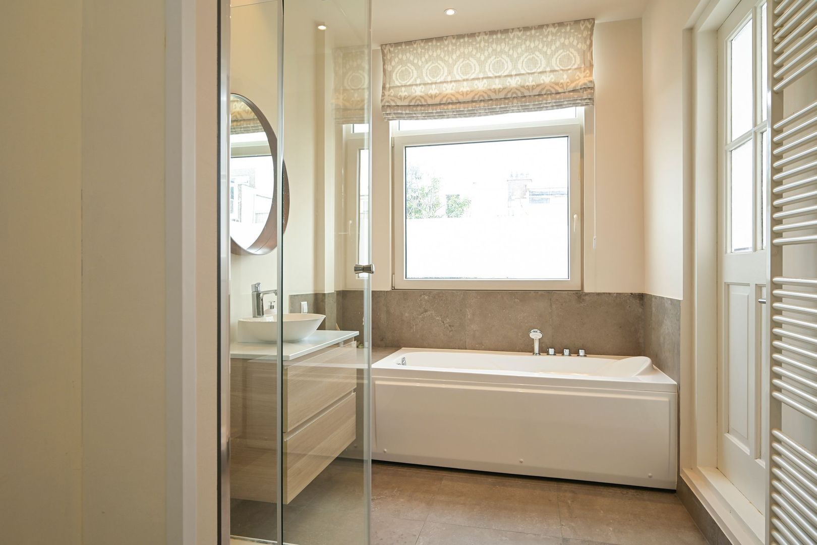 De bovenverdieping biedt 2 volwaardige slaapkamers en een derde, kleinere slaapkamer die ook geschikt is als logeer- baby- of werkkamer. De grootste slaapkamer heeft toegang tot een terras met zicht op de achtertuin. Een tweede badkamer is voorzien van een ligbad, douche en wastafel. Daarnaast is er een extra separate toiletruimte.