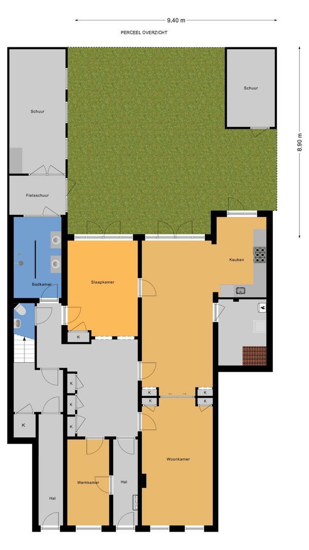 Noordoost, 84m², 940×890cm