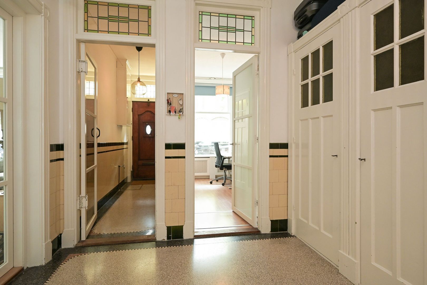 Er zijn 2 voordeuren waarvan 1 plek biedt voor fietsenstalling en ook een urban arrow past daar in.