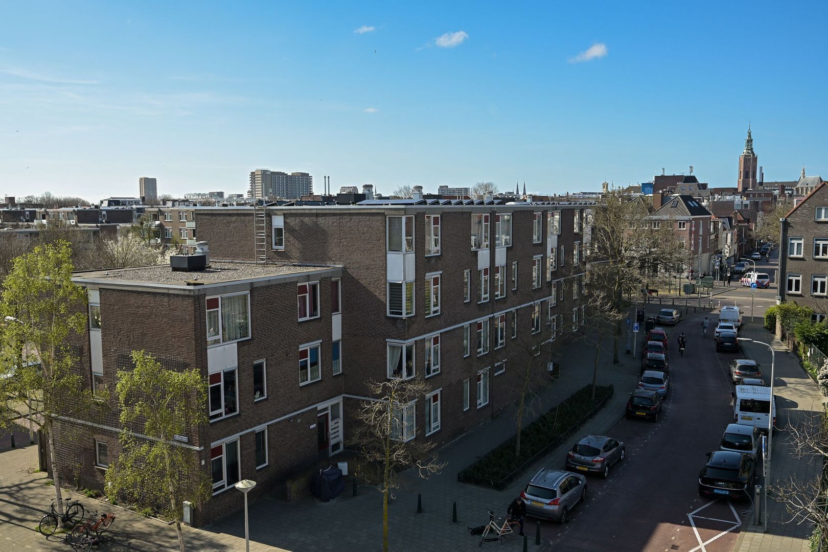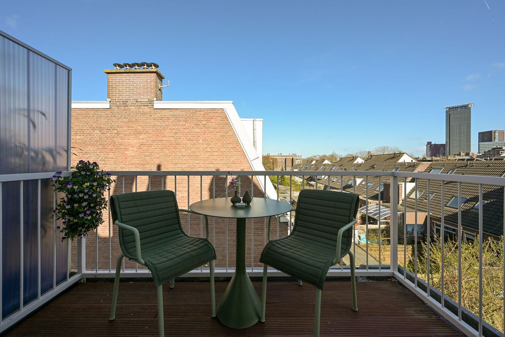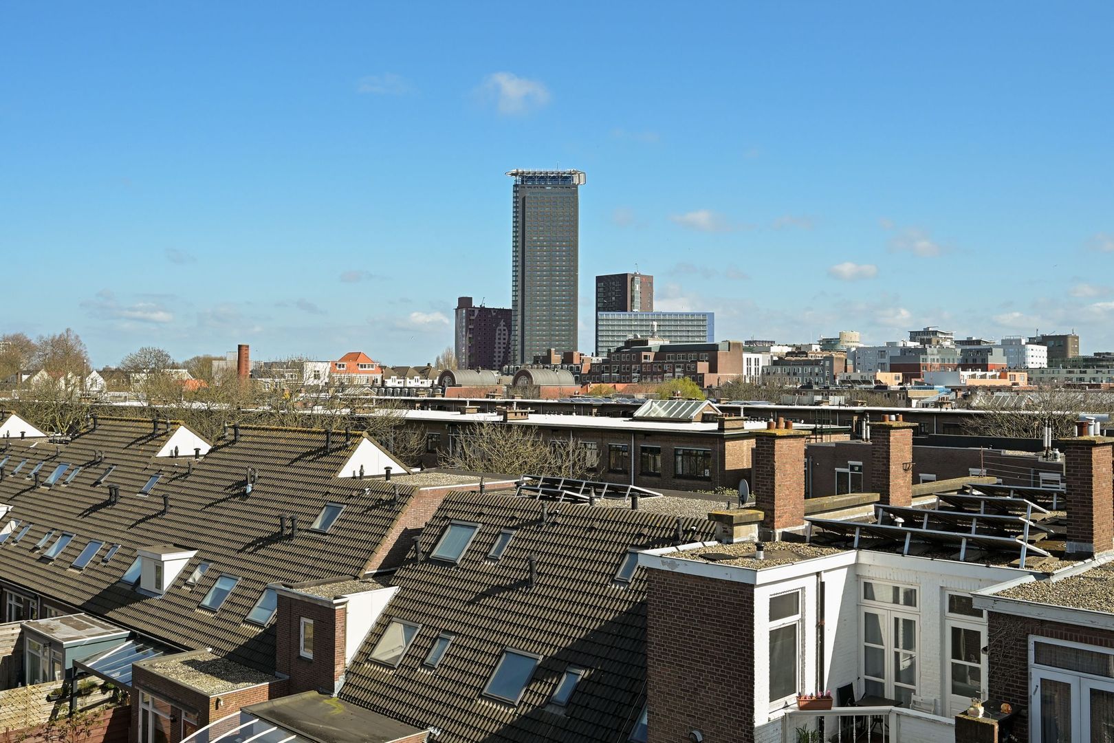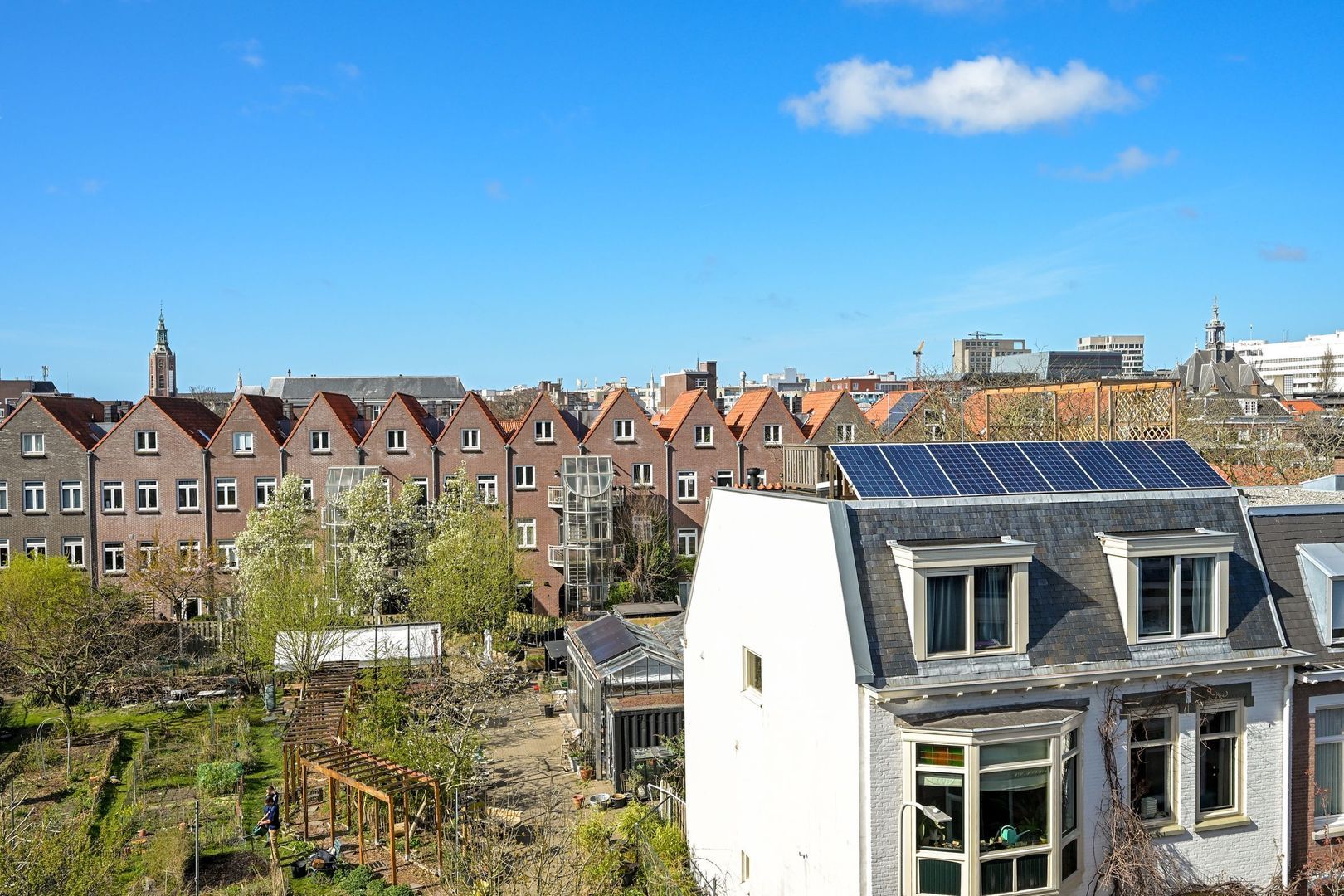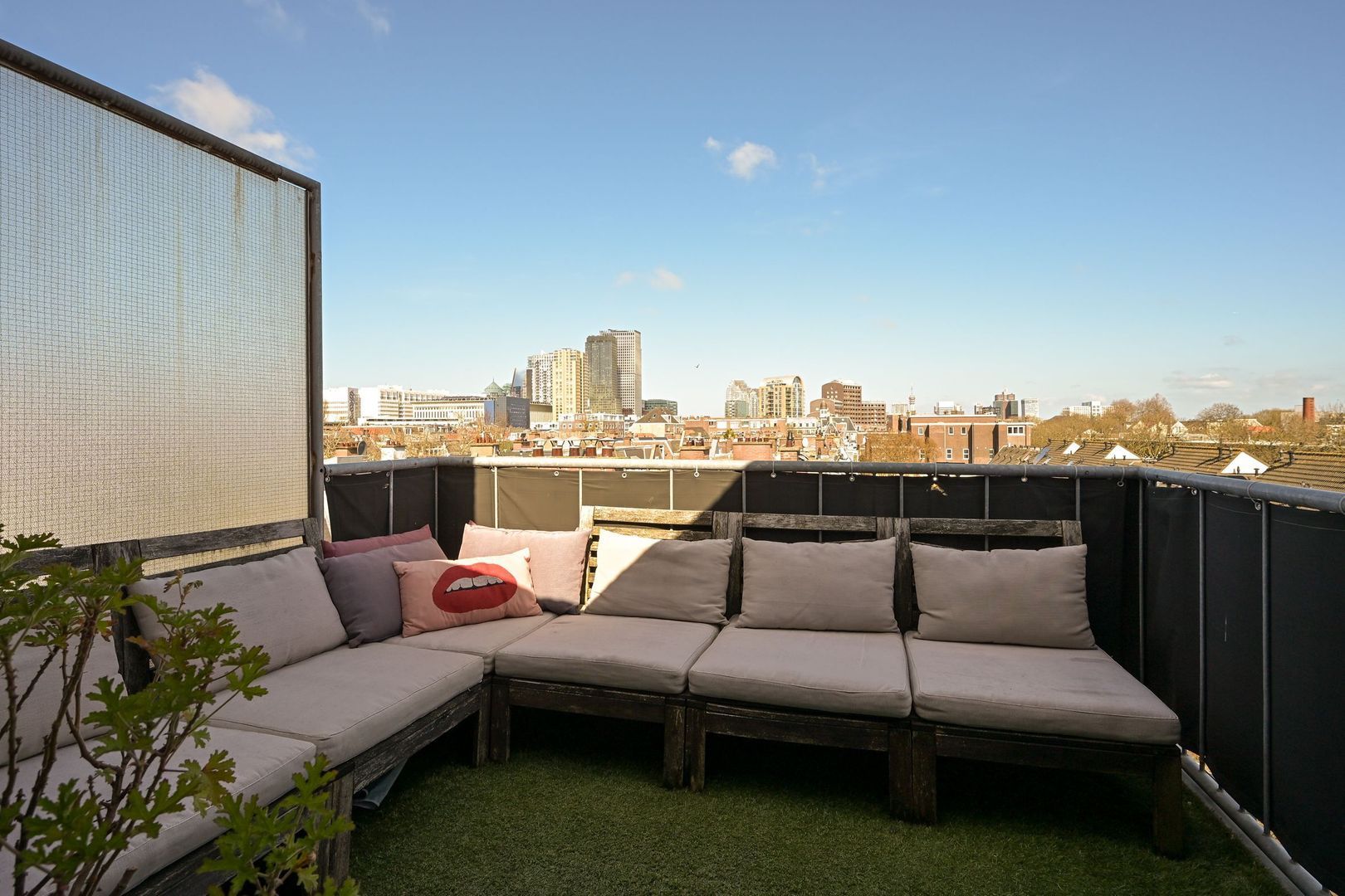 Aan de achterzijde wederom een ruim terras op het Zuidoosten met fantastisch uitzicht over Den Haag.